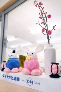 ひと針ひと針丁寧に編み込まれたお内裏様とお雛様は、柔らかな表情と温もりにあふれ、社内の雰囲気をぱっと明るくしてくれています。